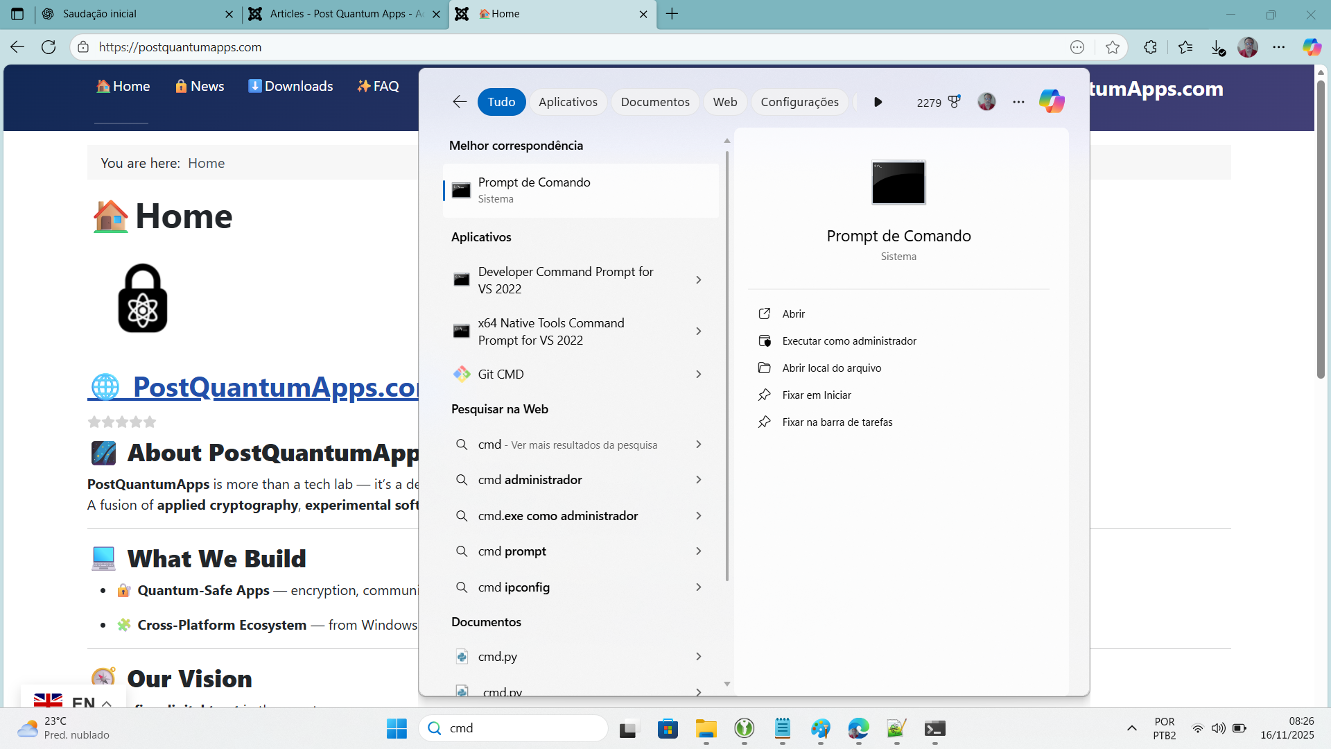 Why i double click in exe and nothing happens? Please Rate Vote 1 Vote 2 Vote 3 Vote 4 Vote 5 The apps are COMMAND LINE APPS. The right use is as follow. click on COMMAND PROMPT and Previous article: Tutorial PQFileCompressAndLock Smart and MultiIdioms Prev Next article: 🧠 FAQ — PostQuantumApps Next